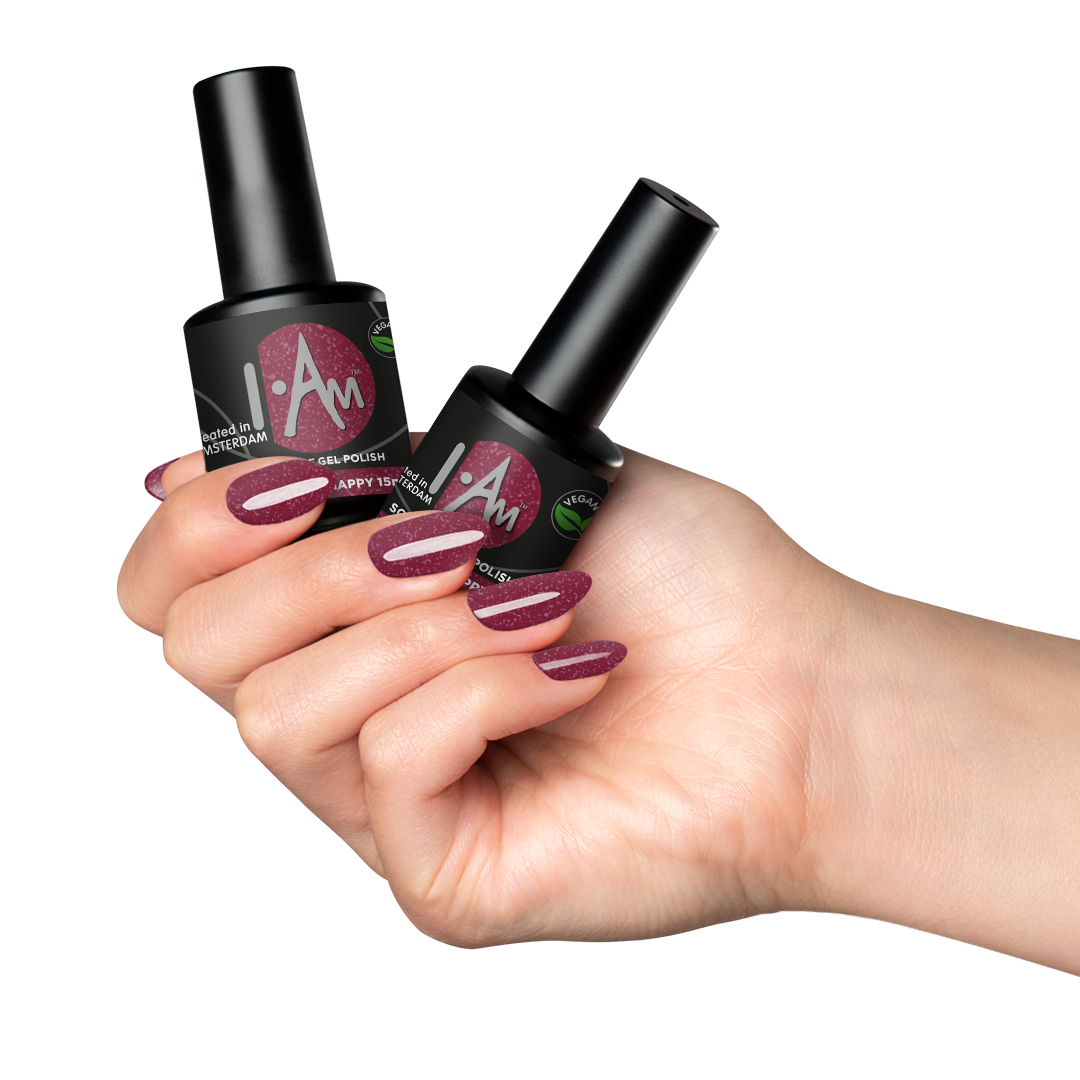 I.Am Soak Off Gel Polish wordt geleverd in een kleurenpallet van 121 modieuze kleuren. I.Am Soak Off Gel Polish is een 100% UV/LED gel die de perfecte viscositeit heeft voor een gemakkelijke toepassing in dunne laagjes.