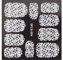 | - Verkrijgbaar in goud of zilver - Verschillende designs - Snelle manier om designs te creëren - Te gebruiken over de hele nagel of gedeelte ervan - Blijft lang zitten - Alleen het design heeft een plak laag - Degelijk en erg dun - Gladde oppervlakte met slechts 1 -2 lagen top coat / gel - Kan worden gebruikt voor op de natuurlijke nagel of gelakte nagels (gel, gel polish, acryl) - Elk vel bevat 10 stickers (2 x 5 groottes) G=Gold S=Silver R=Rose Gold B=Black W=White |